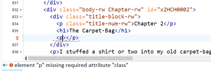 Apart from its lack of idiosyncratic publishing features such as footnotes, bibliographic references, or index terms, HTML’s major drawback is that it is way too permissive for publishing workflows. This is a drawback that it shares with word processor and DTP formats—for automatic conversion tools to generate the formats consistently, or for CSS to effect the desired layout, certain conventions as to the document structure and the use of class attribute values need to be established and respected.